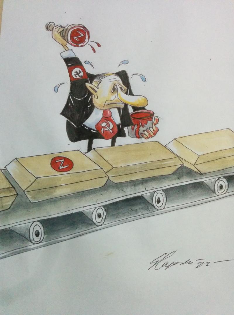 Putler’s working hard giving his seal of approval on the coffins of his “Cargo 200”.